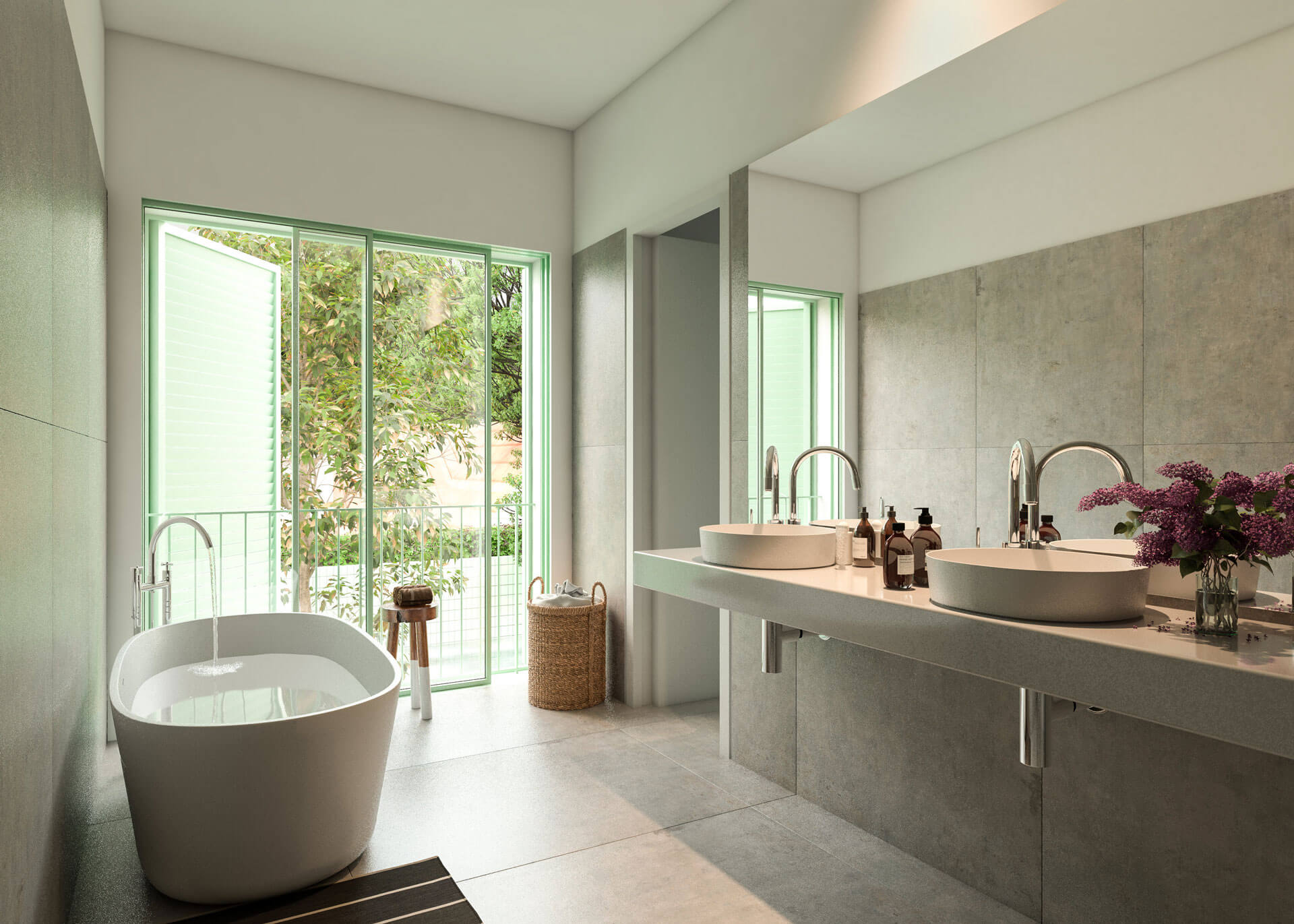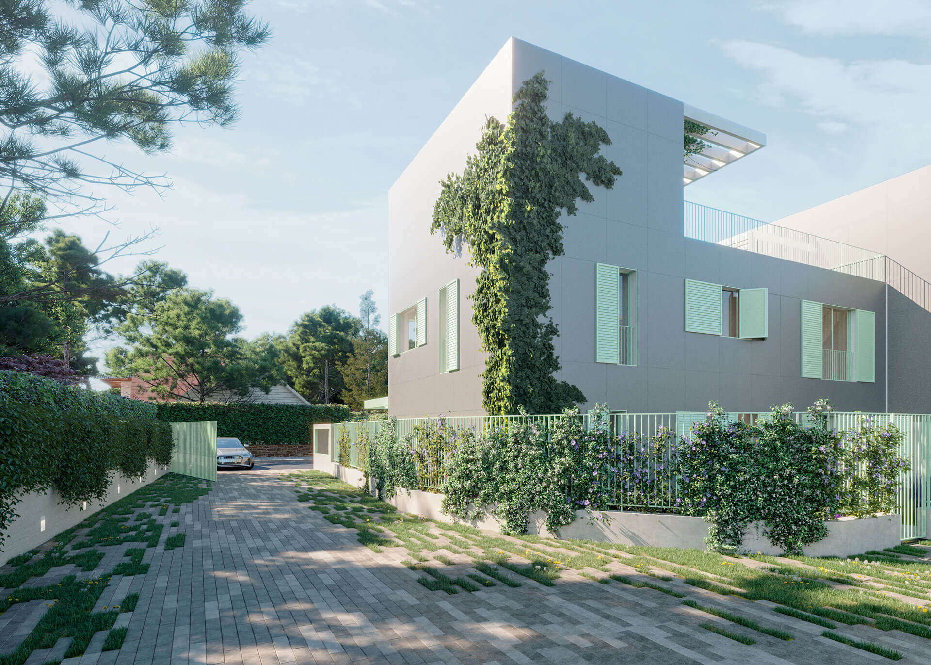 - Fachadas de materiales tecnológicos modernos (paneles de resina termoendurecida, ventanería en aluminio lacado).