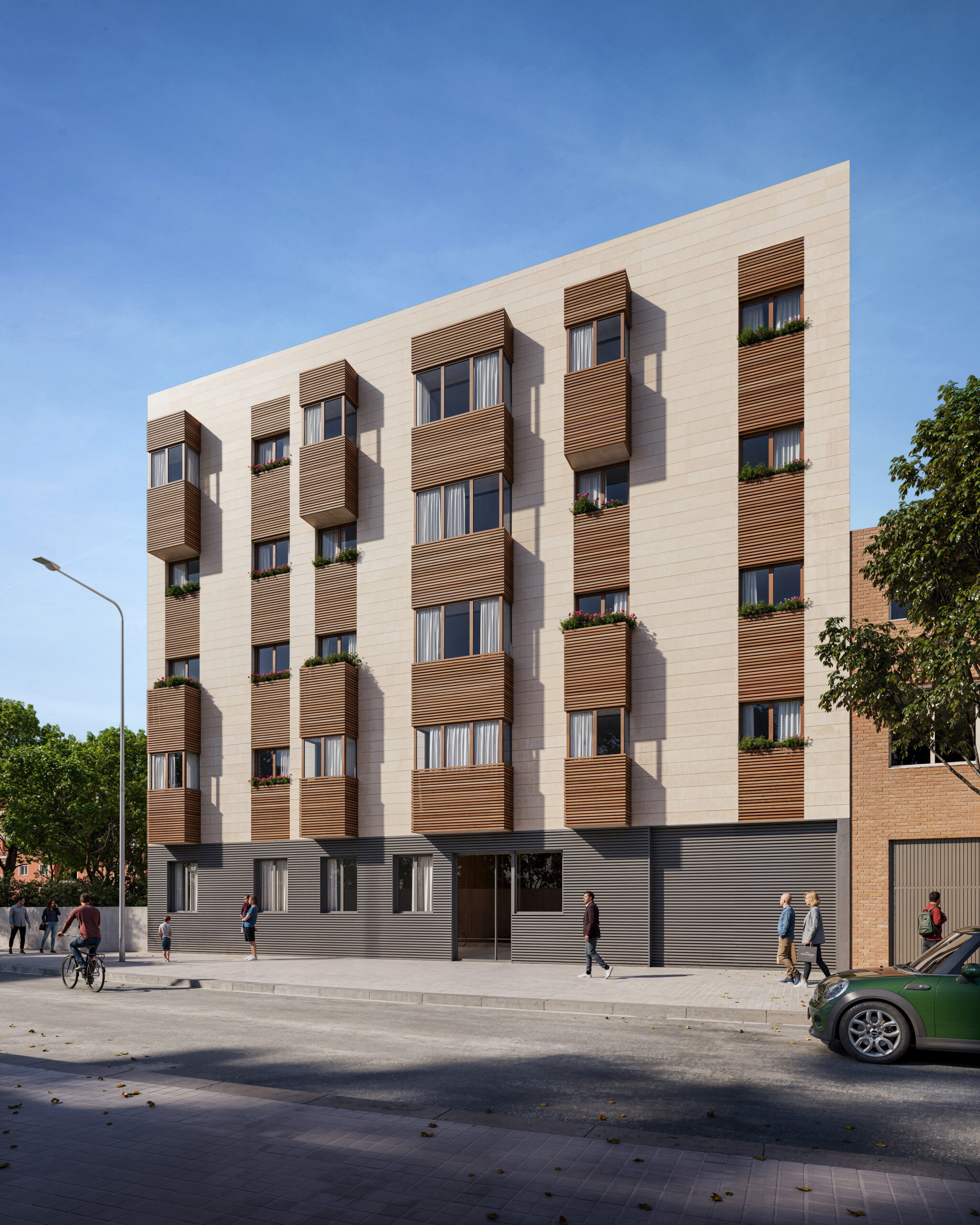 Diseño arquitectónico inspirado en la naturaleza y la modernidad, con líneas limpias, gran luminosidad y materiales que transmiten armonía y bienestar. Incluye 27 plazas de garaje y 16 trasteros.