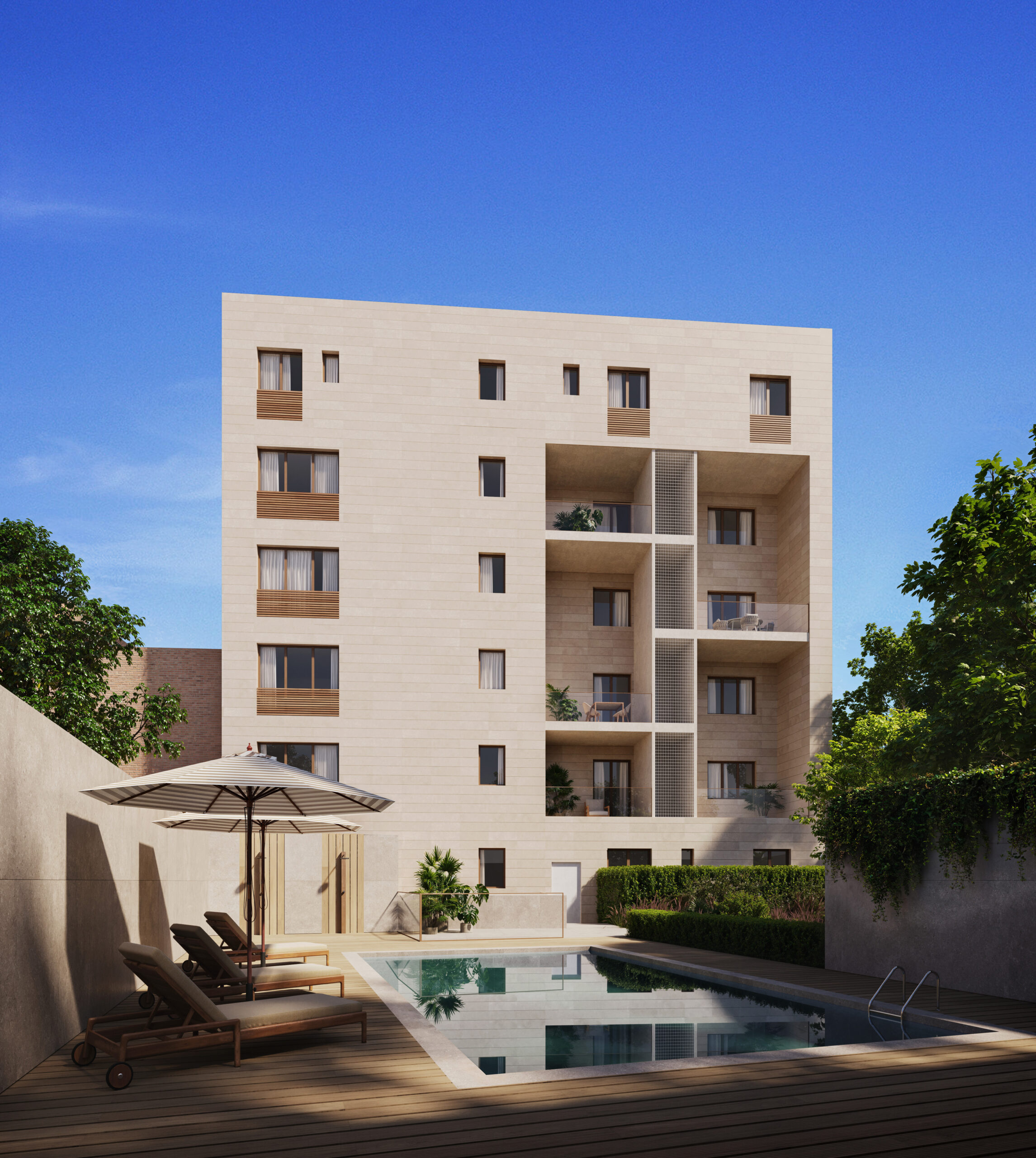 16 viviendas exclusivas de 1, 2 y 3 dormitorios, bajos con jardín y 21 áticos, en urbanización privada con piscina y zonas comunes.