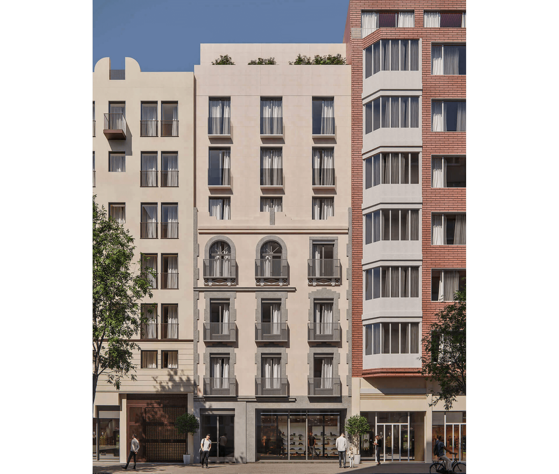 Desarrollo de un edificio de uso residencial mediante la reconstrucción sobre rasante de un programa de vivienda colectiva, con la ejecución de 15 viviendas y 1 local comercial.