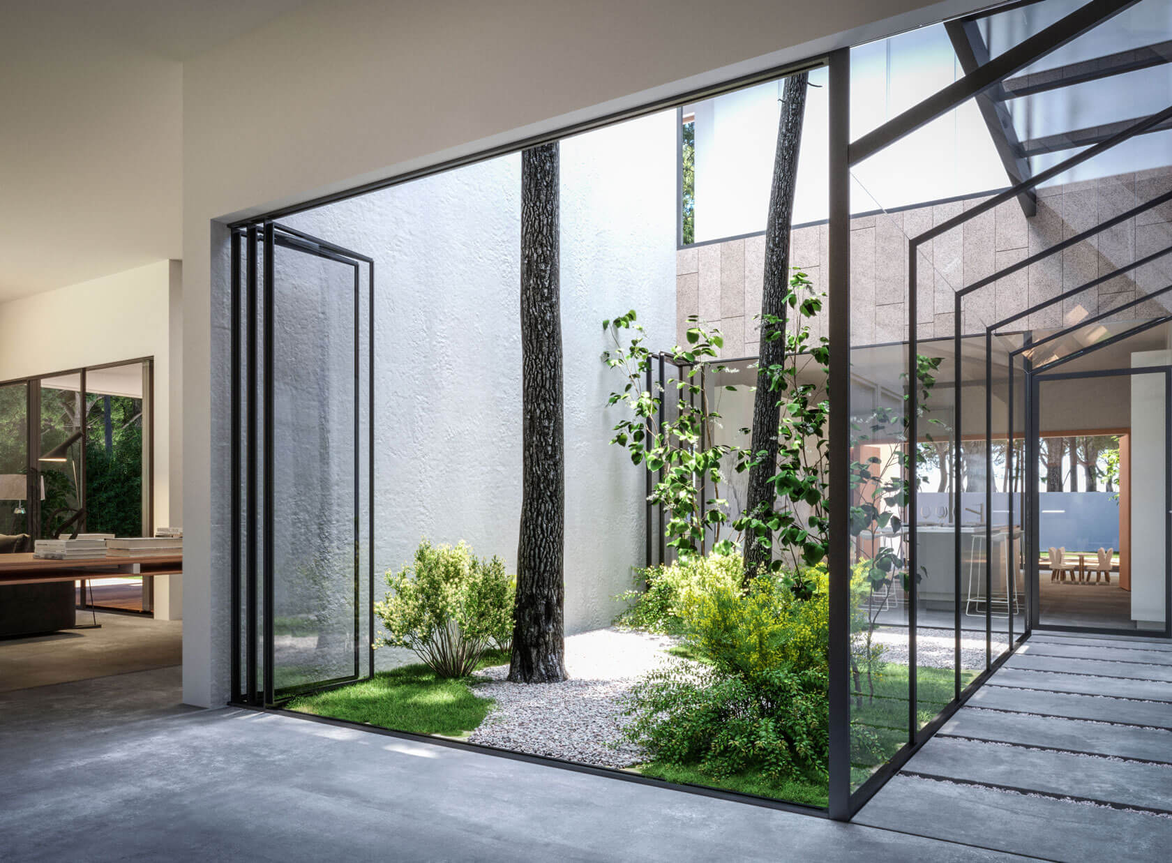 - Carpintería de aluminio oscilo-batientes y/o fijas y acristalamiento tipo “climalit” de doble acristalamiento y cámara de aire intermedia.